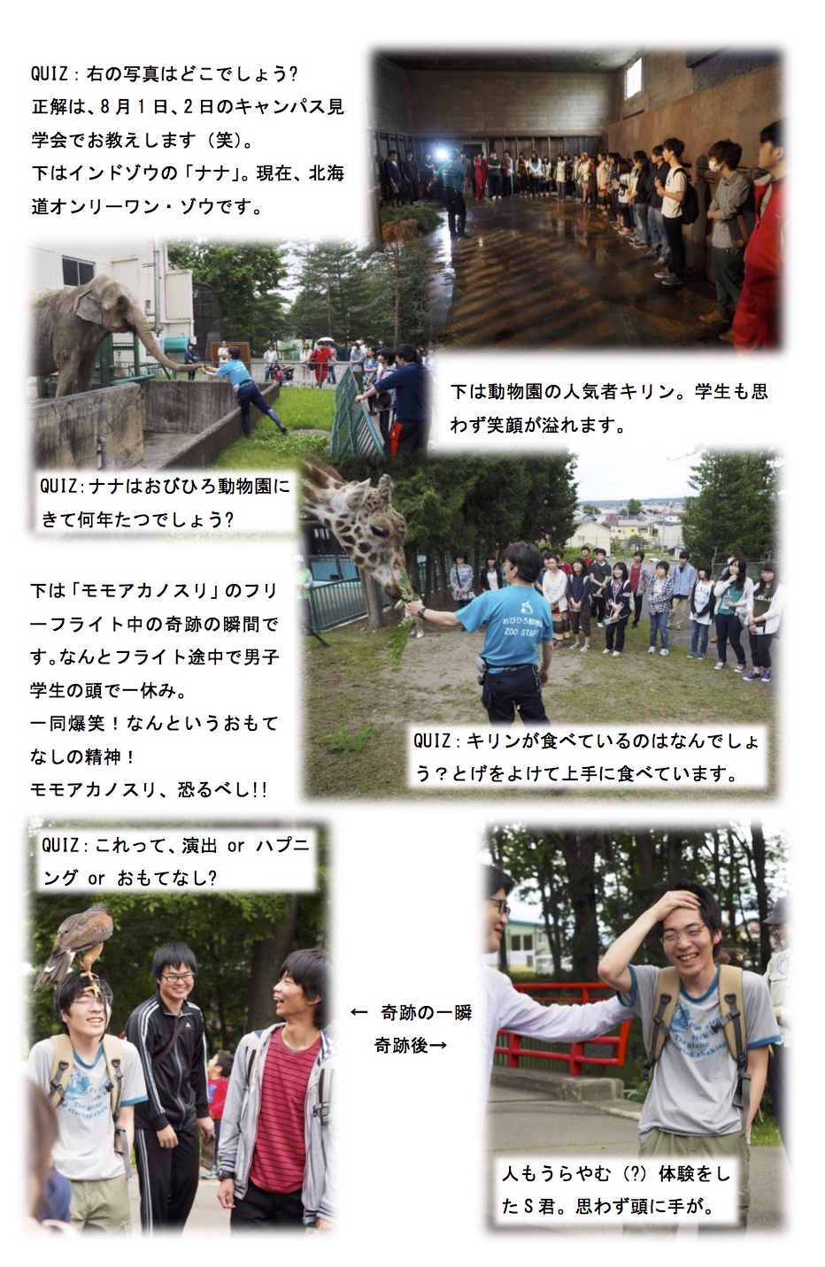 2015年7月4日、昨年に引き続き地域教養学科の1年生科目「入門ゼミナールⅠ」でおびひろ動物園へ行ってきました。